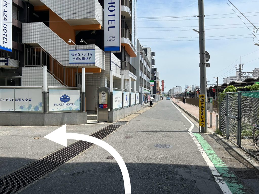 西船橋駅路線の高架下を抜けてすぐの小路地方向に左折します。